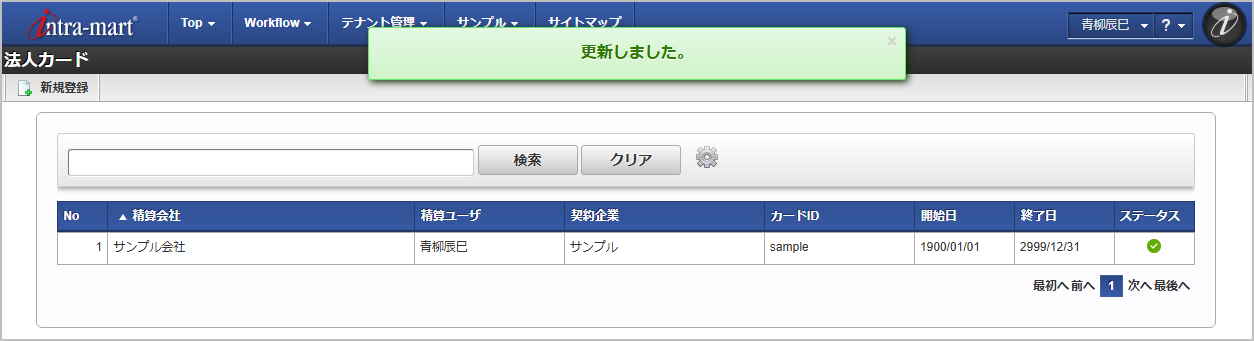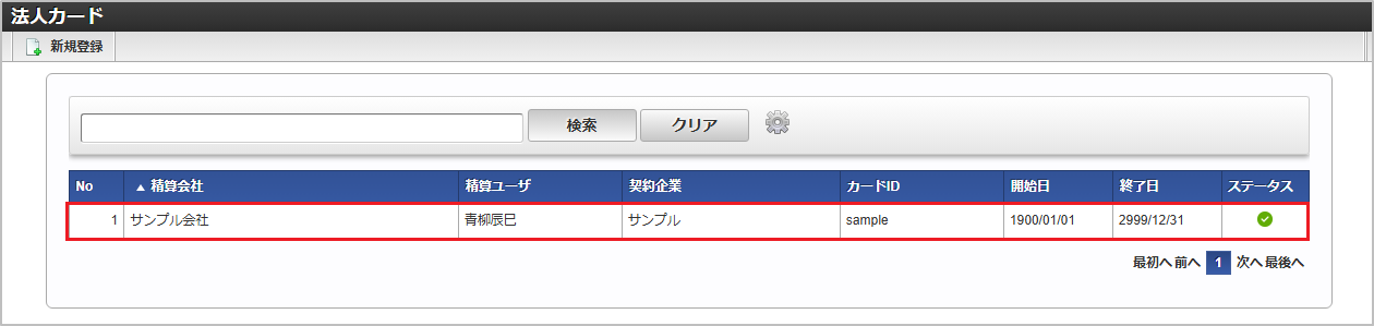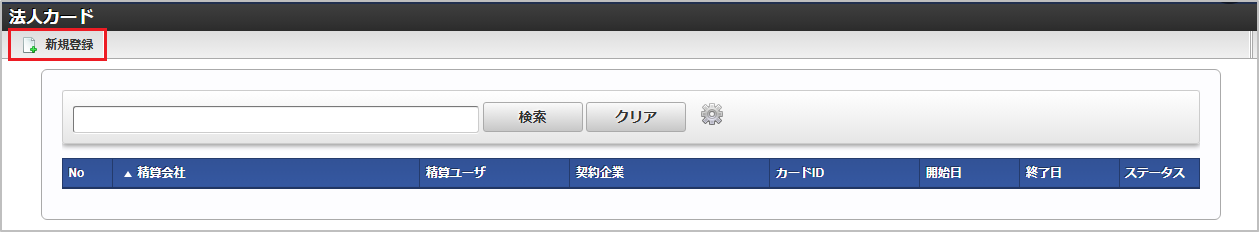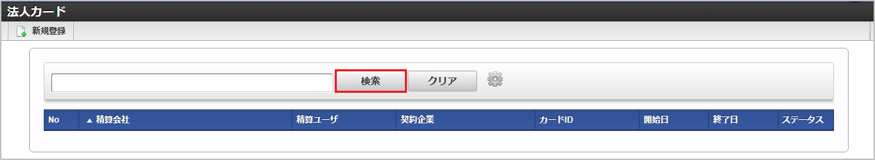 検索欄に検索したい法人カードの以下の項目を入力して「検索」をクリックすると、結果を一覧に表示します。