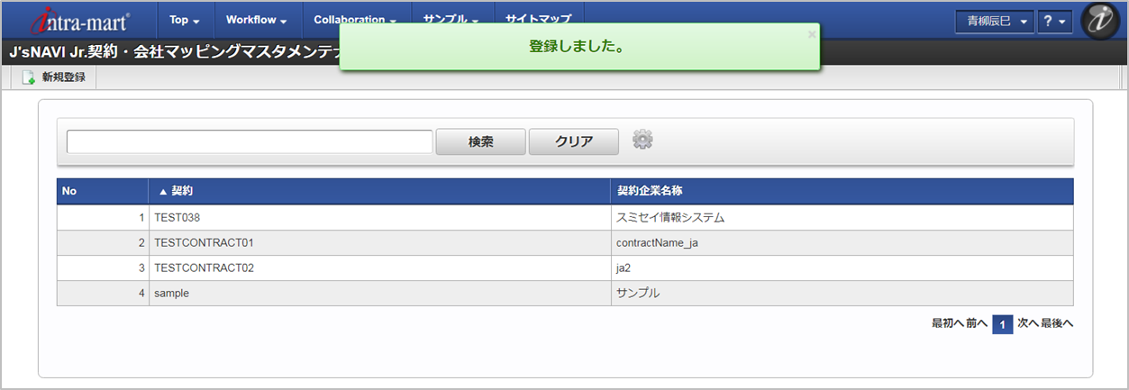契約 契約企業名称 一覧画面の対象データが表示されている行をクリックします。コラム