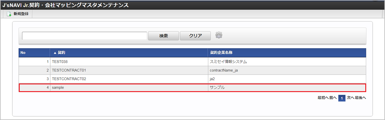 検索欄に検索したい契約・会社マッピングの以下の項目を入力して「検索」をクリックすると、結果を一覧に表示します。