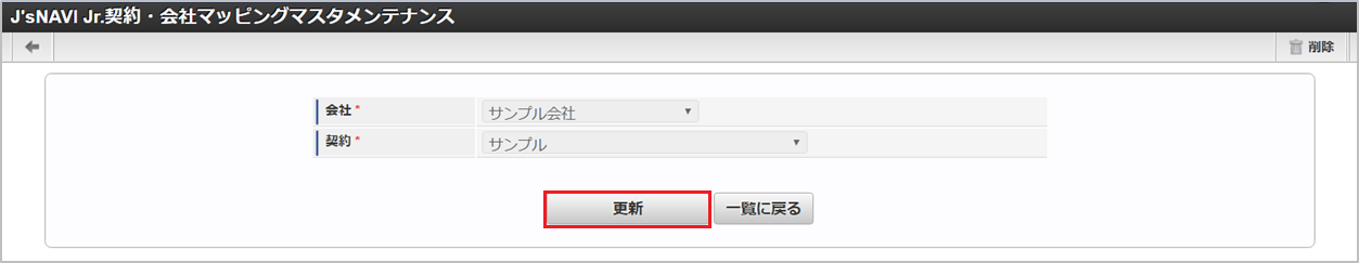 本項では、J’sNAVI Jr.契約・会社マッピングマスタの設定方法を説明します。