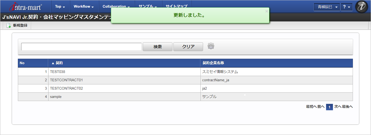 一覧機能の操作方法は、 一覧画面の操作 を参照してください。 登録/更新画面で情報を編集し、「更新」をクリックします。注意