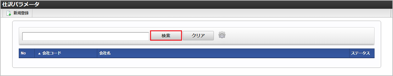 検索欄に検索したい仕訳パラメータの以下の項目を入力して「検索」をクリックすると、結果を一覧に表示します。