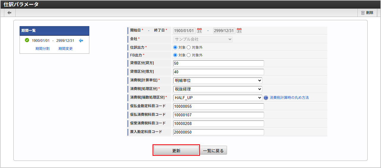 本項では、仕訳パラメータマスタの設定方法を説明します。