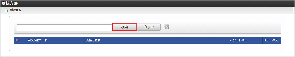 検索欄に検索したい支払方法の以下の項目を入力して「検索」をクリックすると、結果を一覧に表示します。
