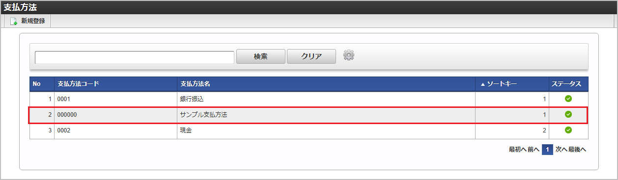 支払方法コード 支払方法名 一覧画面の対象データが表示されている行をクリックします。コラム