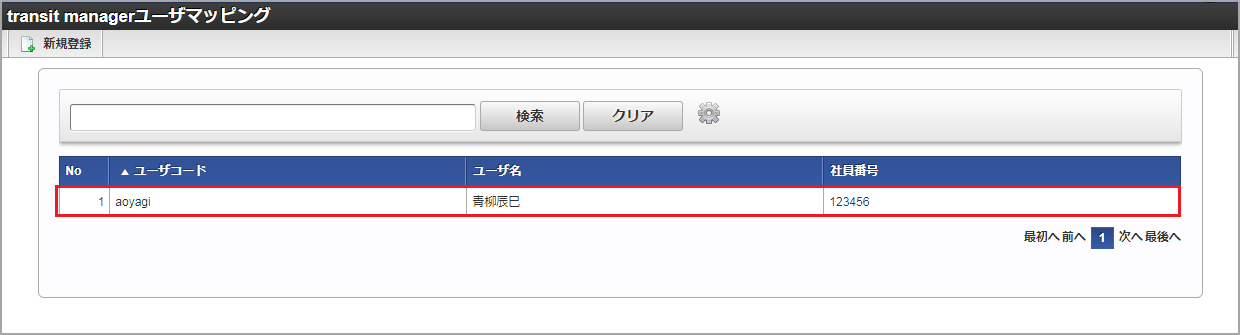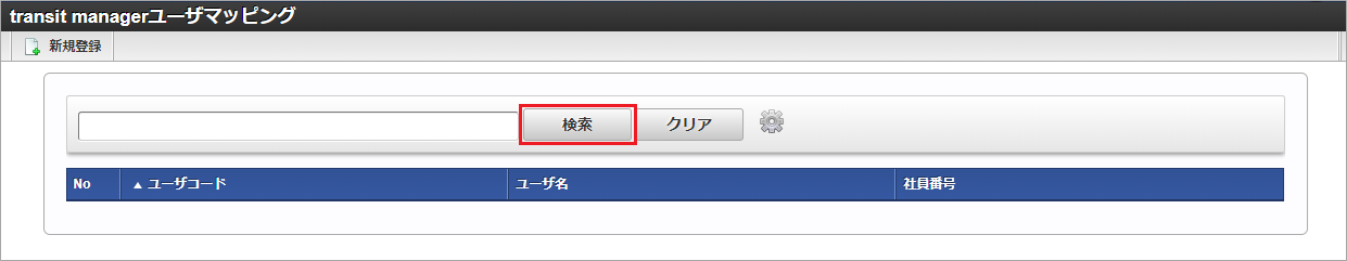 検索欄に検索したいtransit managerユーザマッピングマスタの以下の項目を入力して「検索」をクリックすると、結果を一覧に表示します。
