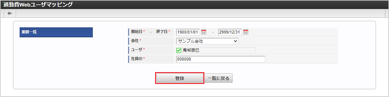本項では、通勤費Webユーザマッピングマスタの設定方法を説明します。