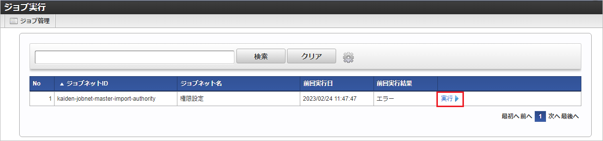 ジョブネットID ジョブネット名 ジョブネットを実行したい行の「実行」をクリックします。コラム