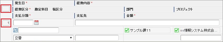 ヘッダーまたは明細の以下の個所をクリックし、操作パネルを開くことで、明細行に対しての操作が行えます。