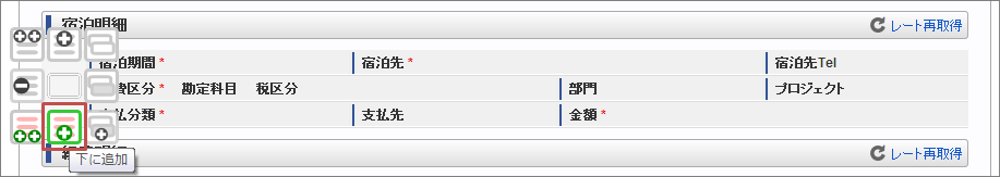 選択された明細行の下に連続して明細行を複数行追加します ![]()