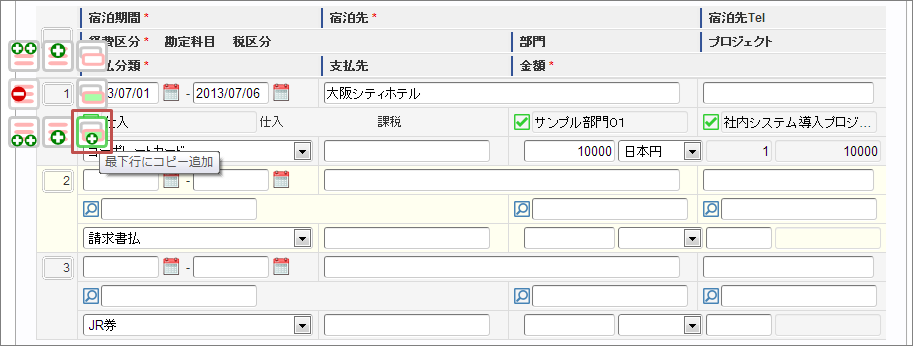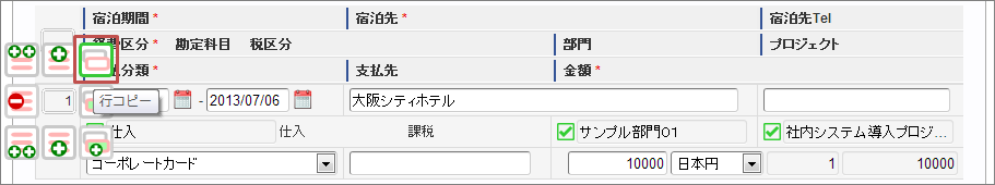 コピーされた行の内容を選択された明細行に貼り付けます ![]()