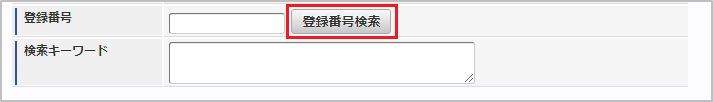 「登録番号検索」ボタンをクリックします。 検索条件を入力し、「検索」をクリックします。コラム