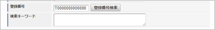 登録番号検索機能の操作を説明します。「適格請求書設定マスタ」の「登録番号チェック種別」を「公表情報ダウンロードデータ」に設定すると使用できます。使用する場合、「適格請求書発行事業者の公表情報マスタ」のデータをインポートしてください。
