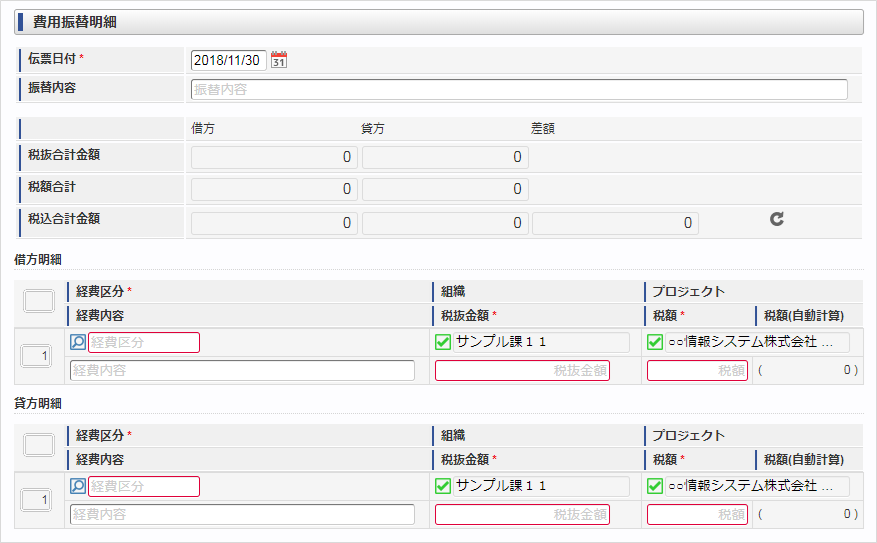 概要費用振替に関する情報を入力するガジェットです。費用の振替が行えます。PC用の画面スマートフォン用の画面![]()