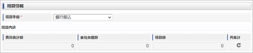 概要 精算申請書に必ず必要なガジェットです。 PC用の画面 スマートフォン用の画面 項目 項目名 説明 精算手段 精算が必要な場合の精算手段を選択します。 精算内訳 精算金額の内訳を表示します。 (費用合計) 経費明細などに入力された費用の合計を表示します。 (会社負担額合計) 経費明細などに入力された費用のうち、「立替」でない金額の合計を表示します。 (精算額) 費用合計 - 会社負担額合計の計算結果を表示します。 マイナスの場合は赤字で表示します 再集計 費用合計・会社負担額合計・精算額を再計算します。