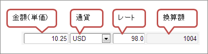 金額(単価)通貨額を入力します。 通貨通貨を選択します。 レートレートを入力します。通貨を選択すると、申請基準日時点のレートを自動設定します。会社通貨と異なる通貨を選択した場合、修正することも可能です。 換算額金額(単価)とレートの両方が入力されてた場合、金額(単価)×レートの計算結果を表示します。 事業者区分・交付義務の免除理由申請書に事業者区分・交付義務の免除理由ガジェットが含まれている場合に利用できます。インボイス制度の事業者区分、適格請求書交付義務の免除理由を選択します。 ファイル申請書にファイル検索ガジェットが含まれている場合に利用できます。