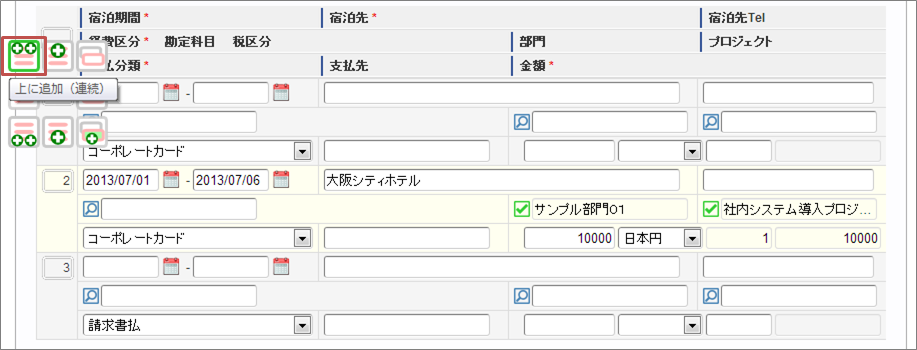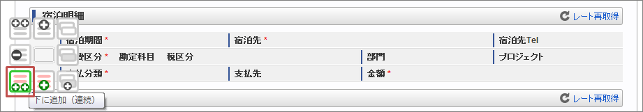 選択された明細行の上に連続して明細行を追加します ![]()