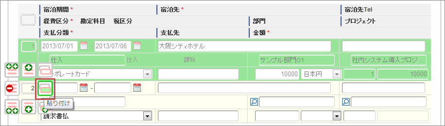 コピーされた行の内容を選択された明細行に貼り付けます ![]()