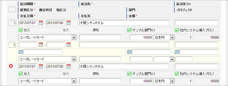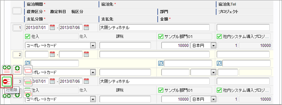 選択された明細行を削除します ![]()