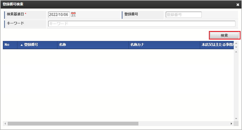 「登録番号検索」ボタンをクリックします。![]()