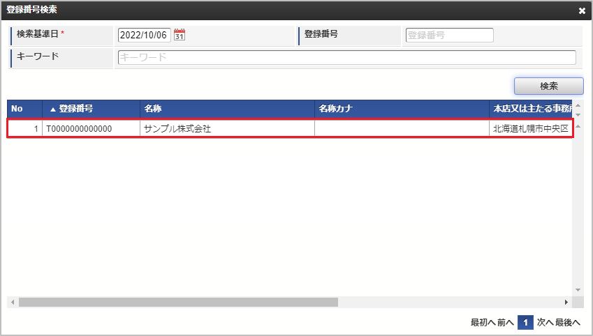 「登録番号」が反映されます。「決定」をクリックした場合、取引先に名称が反映されます。![]()