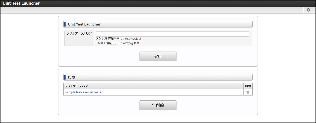 「グローバルナビ」-「サイトマップ」-「テストツール」-「Unit Test Launchar」をクリックします。
