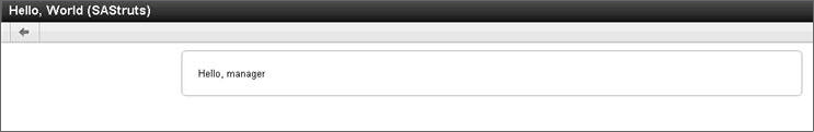 出力画面(output.jsp)を作成します。プロジェクトの src/main/webapp/WEB-INF/view/sample/sa/hello の配下に「 output.jsp 」という名前でファイルを作成し、以下のソースを実装します。<%@ page contentType="text/html; charset=UTF-8" pageEncoding="UTF-8" %> <%@ taglib prefix="imui" uri="http://www.intra-mart.co.jp/taglib/imui"%> <%@ taglib prefix="s" uri="http://sastruts.seasar.org" %> <%@ taglib prefix="f" uri="http://sastruts.seasar.org/functions" %> <!-- HEADタグ --> <imui:head> <title>Hello, World </title> <script type="text/javascript"> function back() { $('#back-form').submit(); }; </script> </imui:head> <!-- 画面上に表示されるタイトル --> <div class="imui-title"> <h1>Hello, World (SAStruts)</h1> </div> <!-- ツールバー(前の画面へと戻るボタンを配置) --> <div class="imui-toolbar-wrap"> <div class="imui-toolbar-inner"> <ul class="imui-list-toolbar"> <li> <!-- 「戻る」ボタンのアイコン、HelloActionのindexメソッドが呼び出される。 --> <a href=${f:url("/sample/hello")} class="imui-toolbar-icon" title="back"> <span class="im-ui-icon-common-16-back"></span> </a> </li> </ul> </div> </div> <!-- 出力結果 --> <div class="imui-form-container-narrow"> <label> <imui:textbox type="text" value="${f:h(helloDto.outputString)}" id="name" name="name" size="10" class="imui-text-readonly" readonly /> </label> </div>コラム