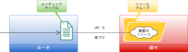 認可に紐づけるため、ルーティングテーブルに authz タグを記述します。<?xml version="1.0" encoding="UTF-8"?> <routing-jssp-config xmlns="http://www.intra-mart.jp/router/routing-jssp-config" xmlns:xsi="http://www.w3.org/2001/XMLSchema-instance" xsi:schemaLocation="http://www.intra-mart.jp/router/routing-jssp-config routing-jssp-config.xsd"> <file-mapping path="/app/foo" page="business/foo"> <authz uri="service://sample/foo" action="execute" /> </file-mapping> </routing-jssp-config>注意