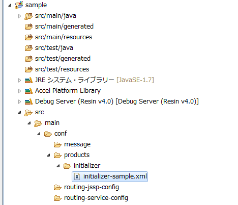 src/main/conf/products/initializer/initializer-[プロジェクト名].xmlを作成します。コラム