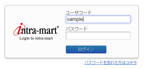 ステップ1で作成したsampleでログインします。ユーザコード:sample パスワード:無し(空白のまま)