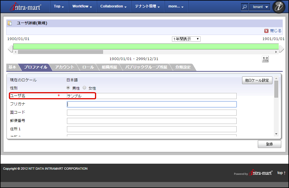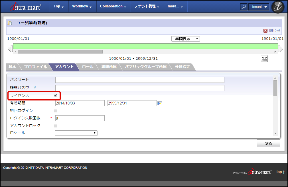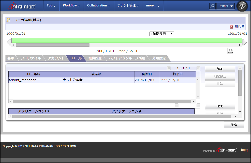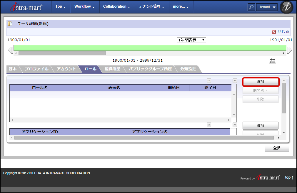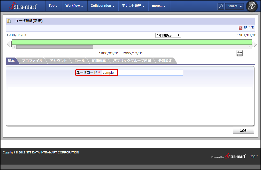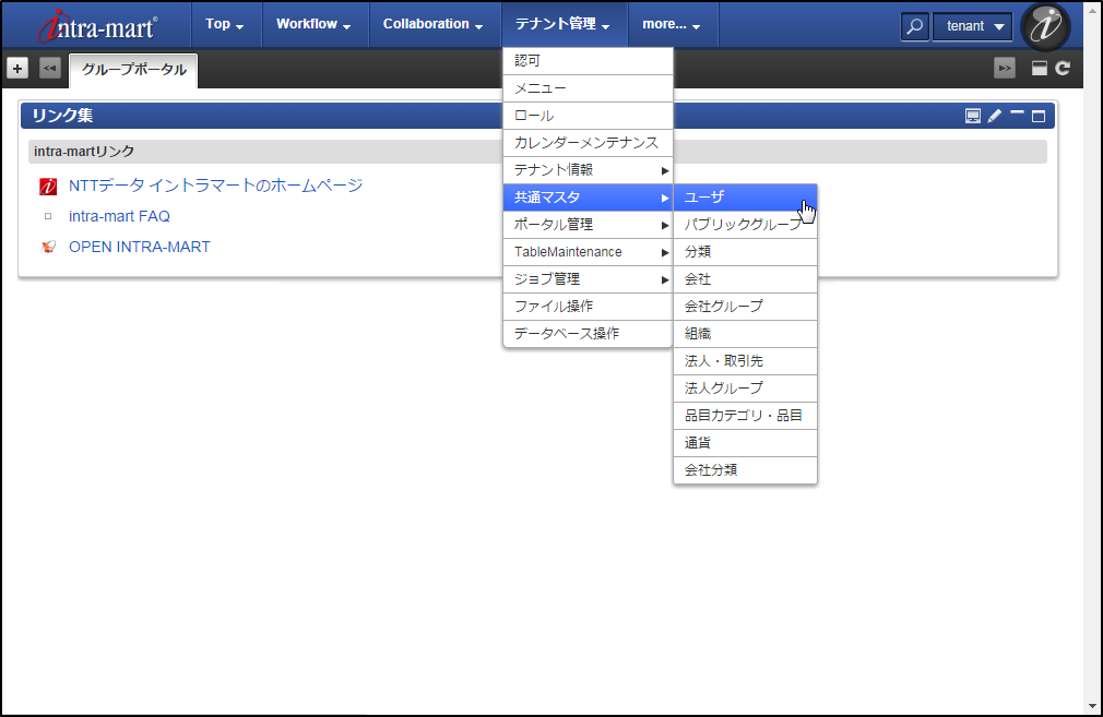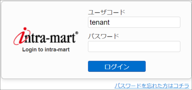 テナント管理者でログインします。ユーザコード:tenant パスワード:無し(空白のまま)