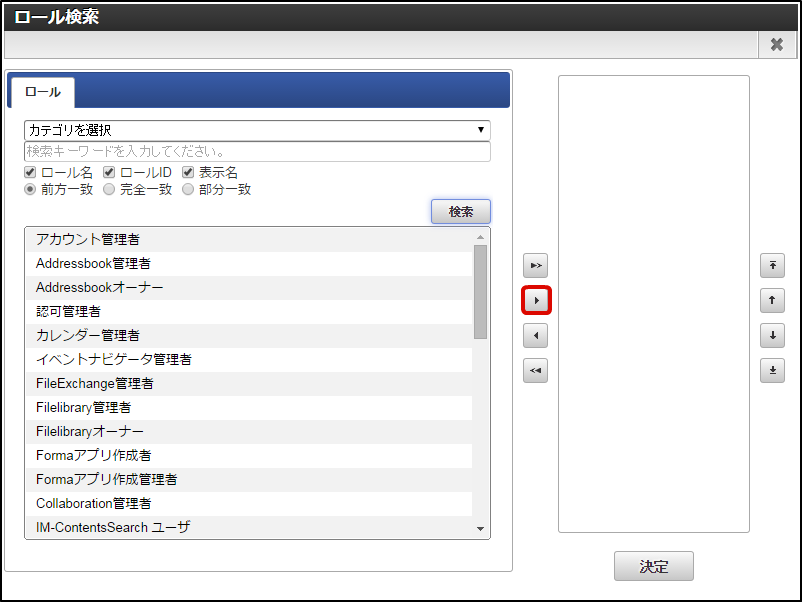 「ロール検索」画面が表示されたら、「検索」をクリックします。