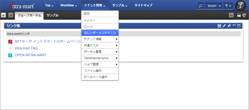 「テナント管理」-「カレンダーメンテナンス」をクリックします。