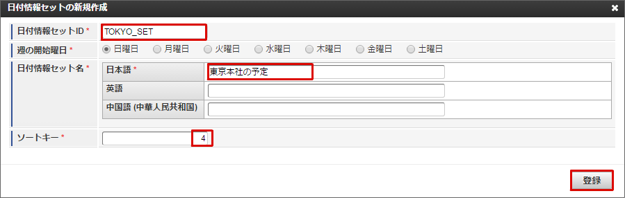 以下を選択・入力し、「登録」をクリックします。