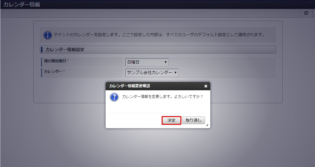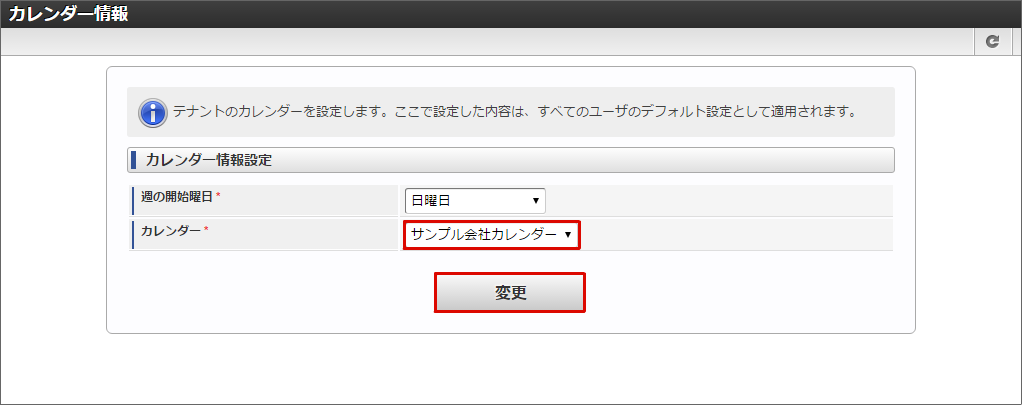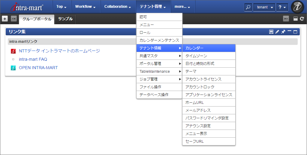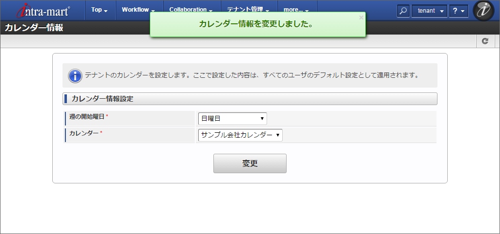 intra-mart Accel Collaboration に「サンプル会社カレンダー」が表示されていることが確認できました。