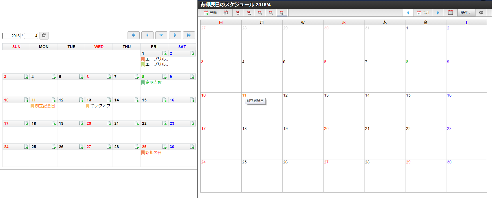 4/11の「創立記念日」が表示されました。