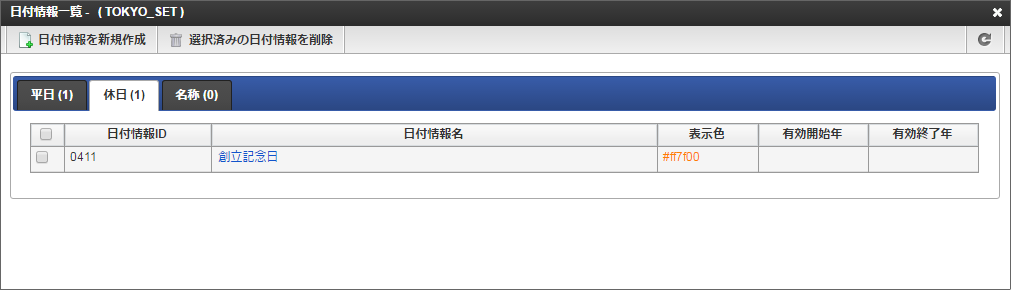 「日付情報を新規作成」をクリックします。