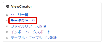 「ViewCreator」-「データ参照一覧」をクリックします。