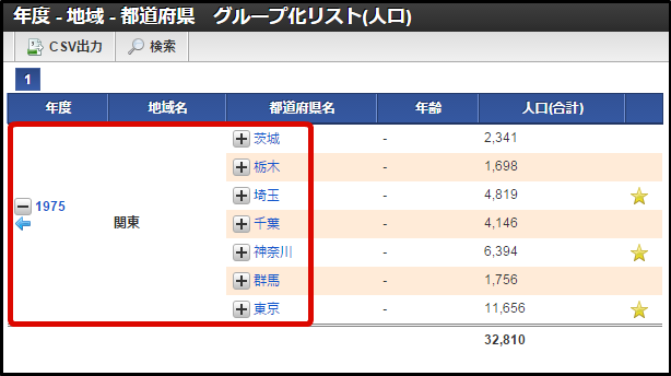 - グループ化設定を行う事でデータ参照が見やすくなる事が確認できます。