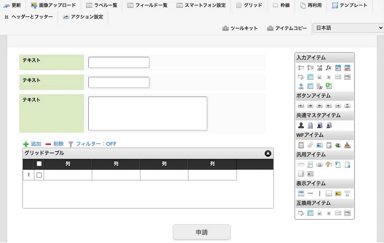 業務テンプレートで簡単にアプリケーションを開発