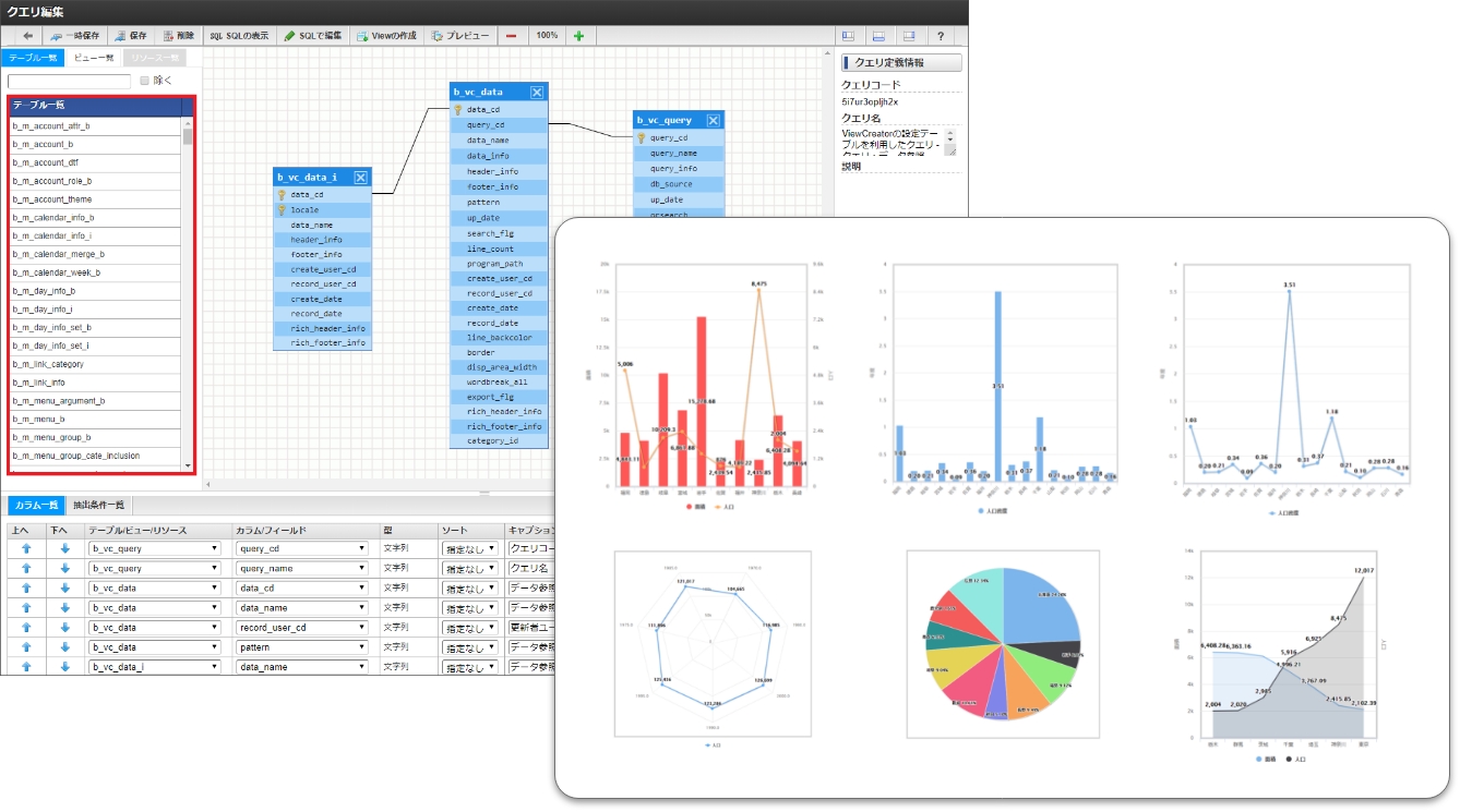 | 表やグラフの作成 | ViewCreator | 業務データをGUI操作で取得、解析