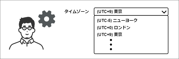 アプリケーションのユーザがそれぞれ異なる地域や文化圏に住んでいることを想定した場合、ユーザごとに日付と時刻の形式やタイムゾーンが異なります。