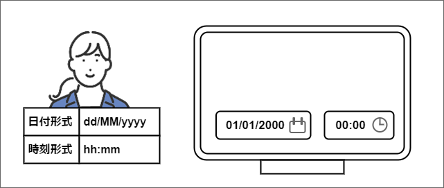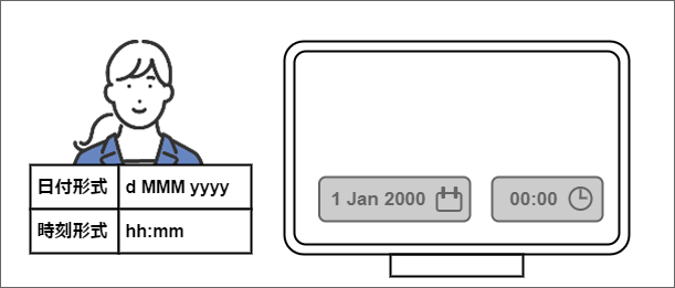 また、ユーザが設定した形式に従って、日付や日時を入力できる必要があります。