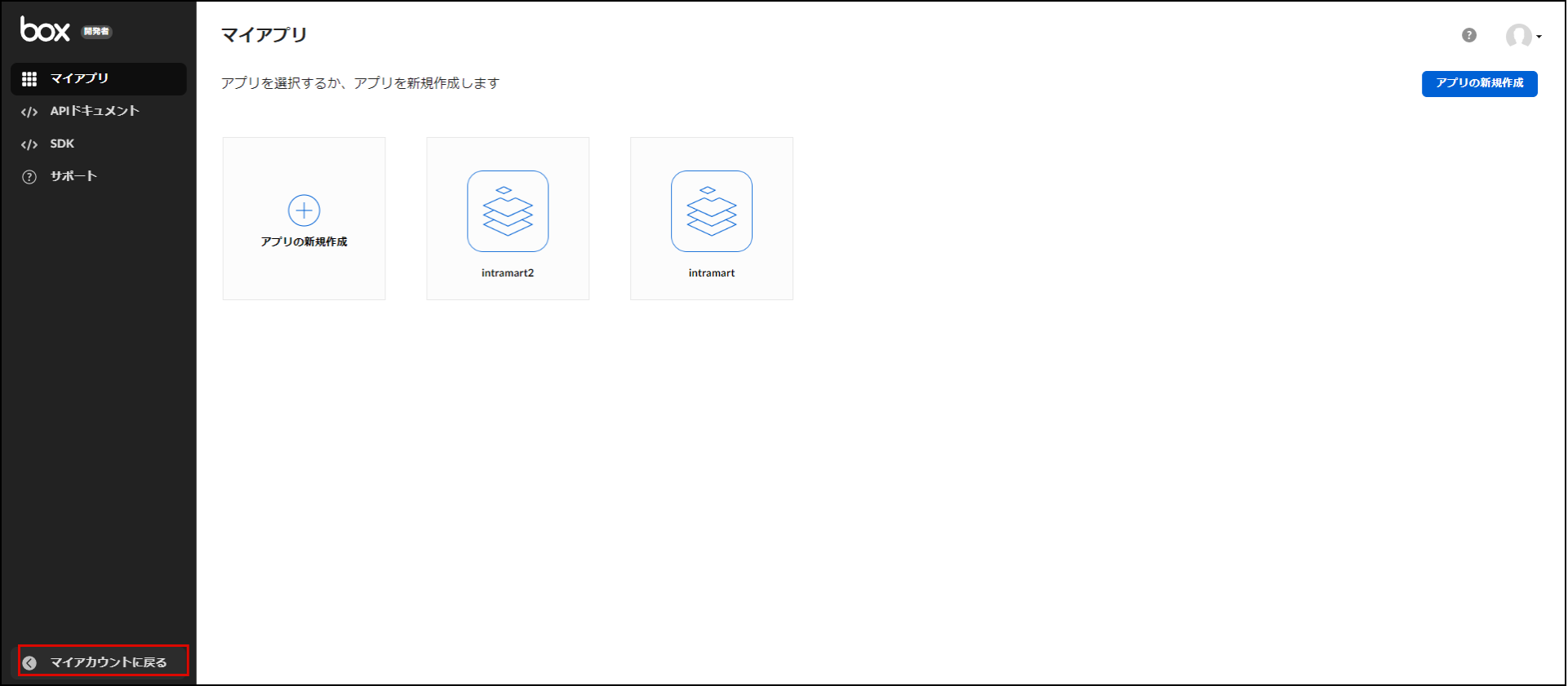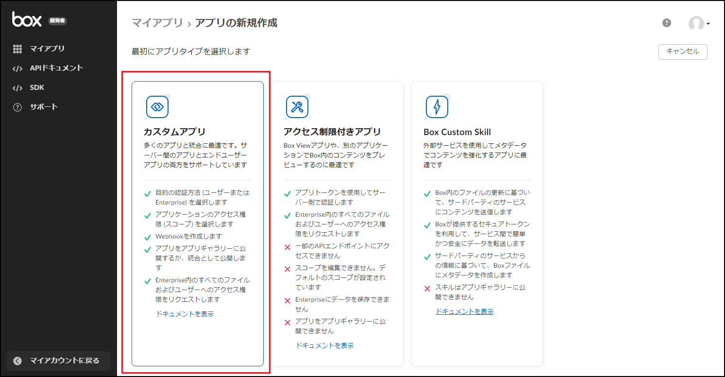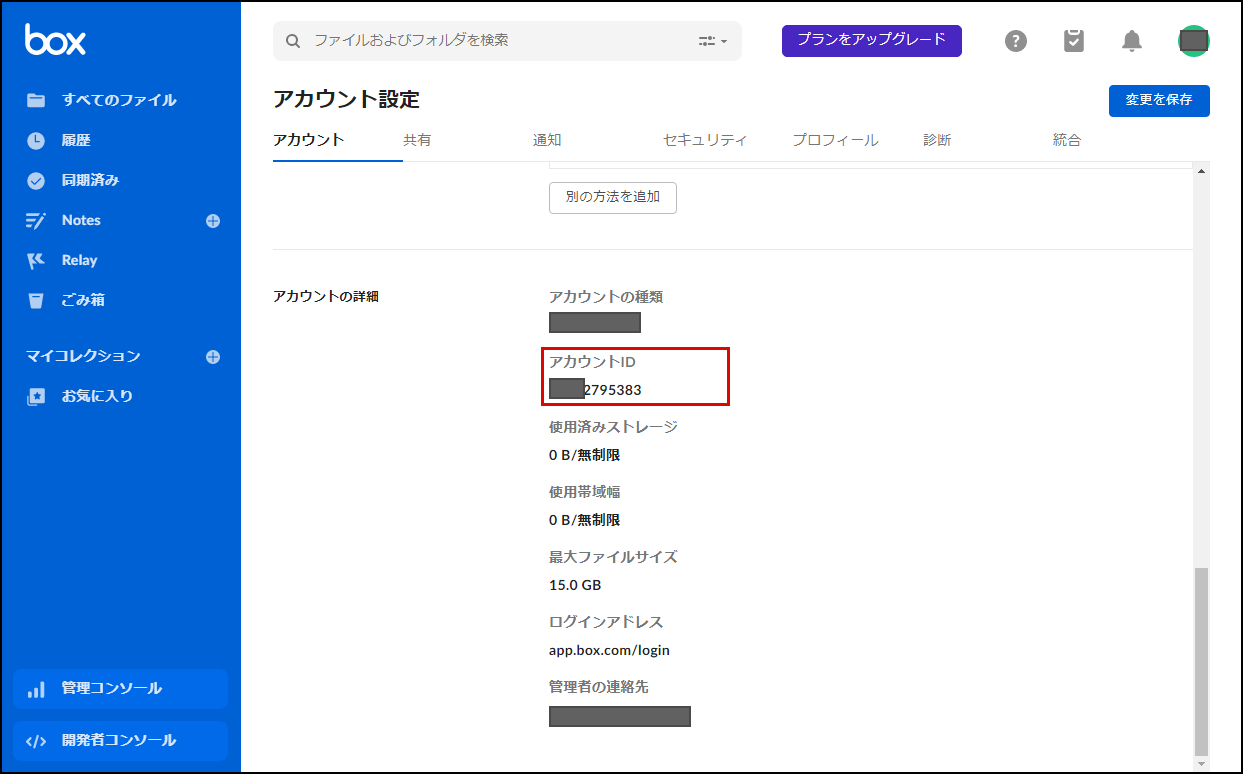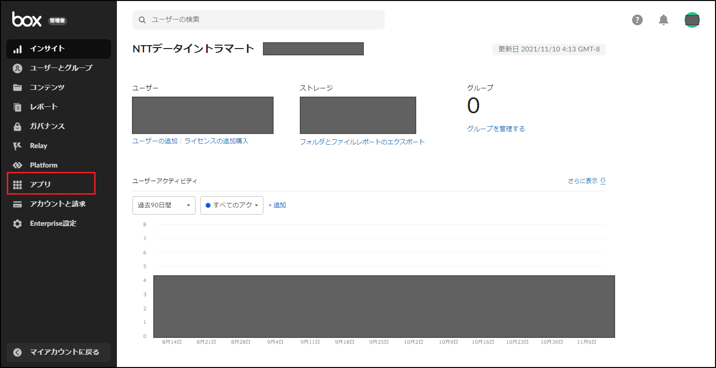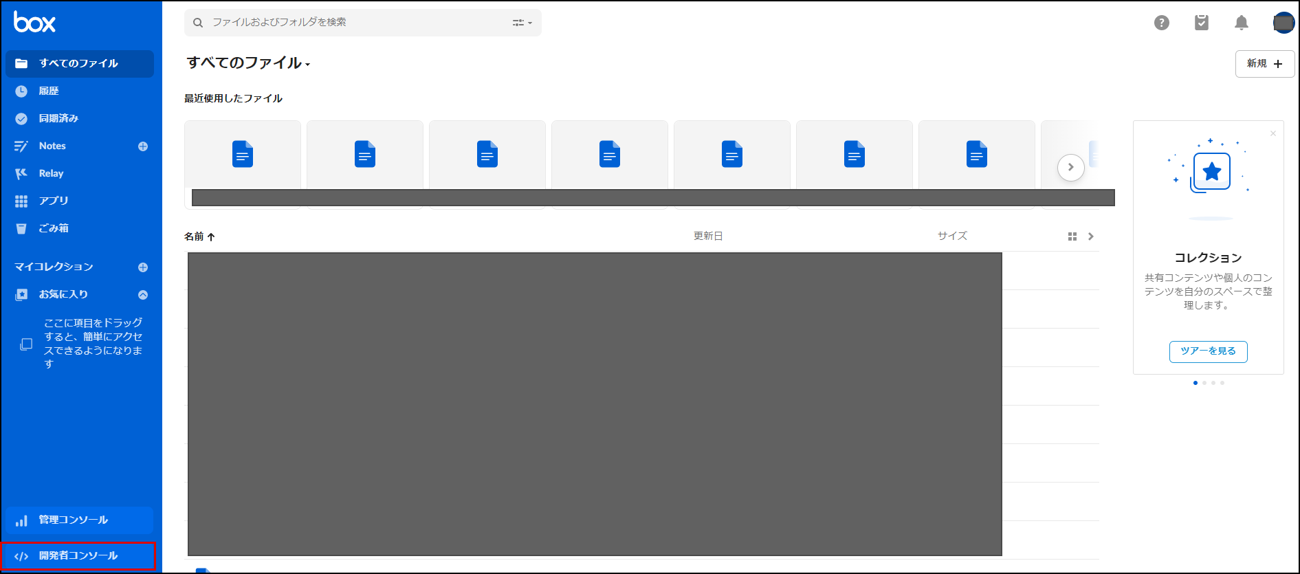 Box に管理者としてログインし、左メニュー下部の「開発者コンソール」をクリックします。