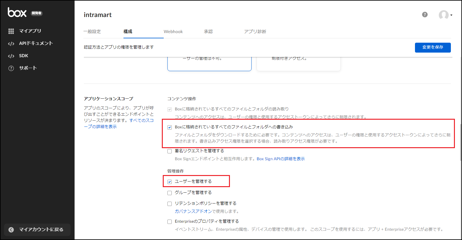 - Boxに格納されているすべてのファイルとフォルダへの書き込み