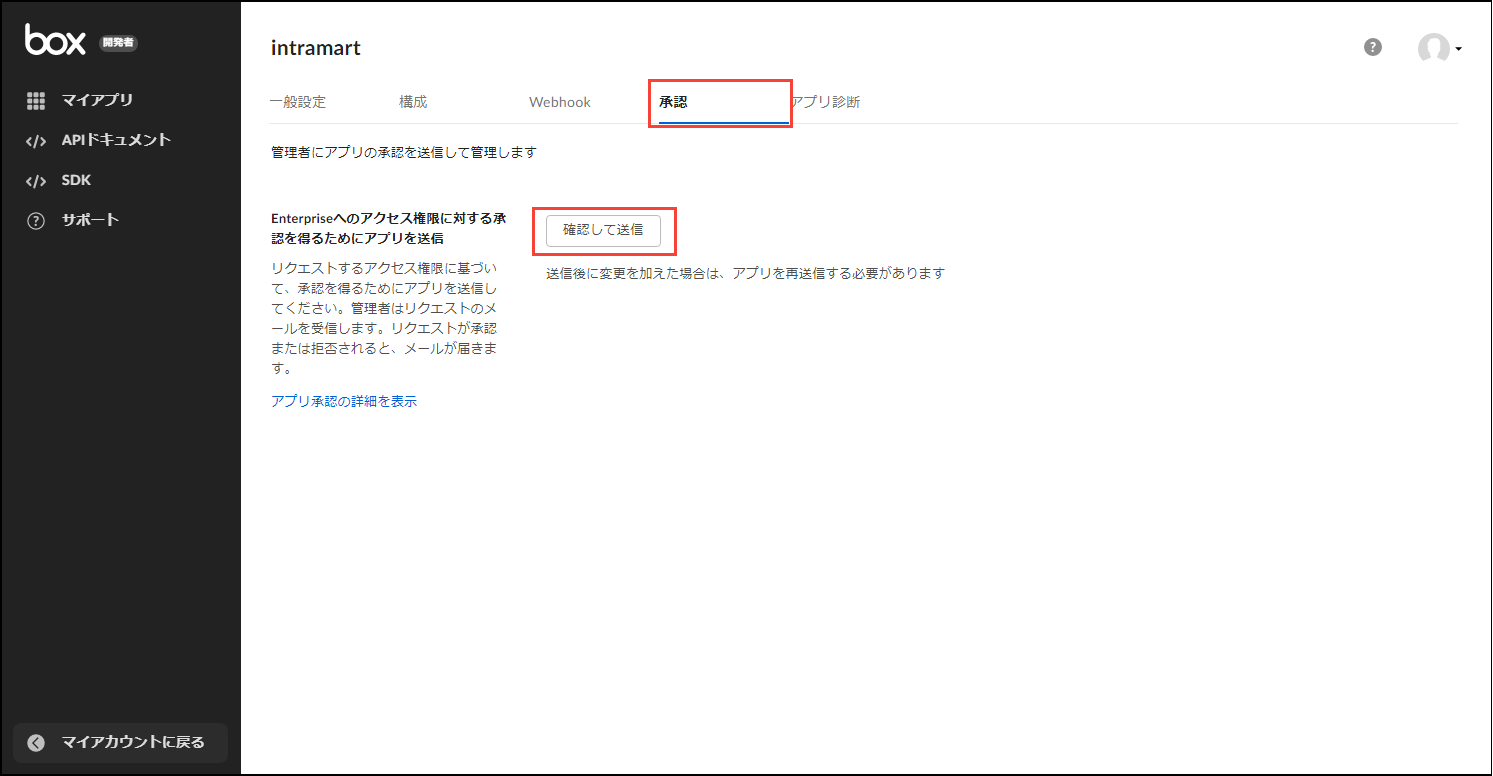 「承認」タブをクリックし、「確認して送信」ボタンをクリックします。