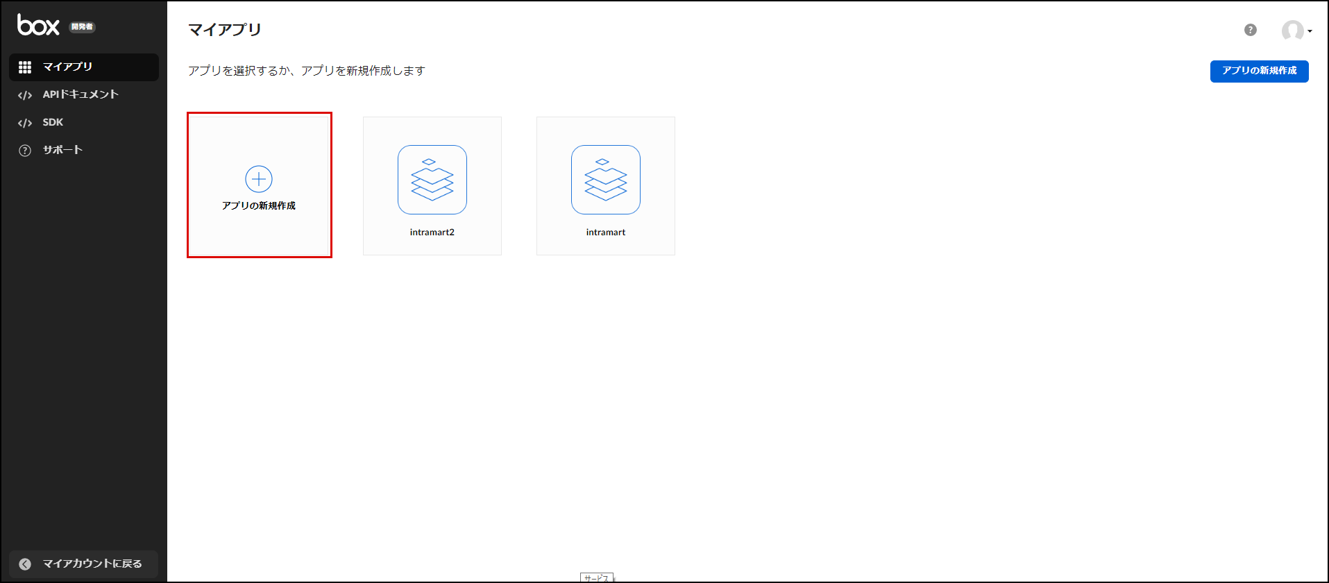 「アプリの新規作成」をクリックします。