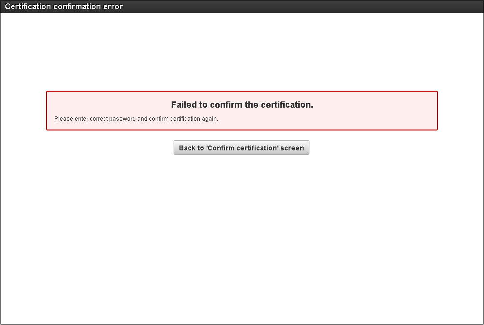 認証に失敗した場合、「認証確認エラー」画面を表示します。注意