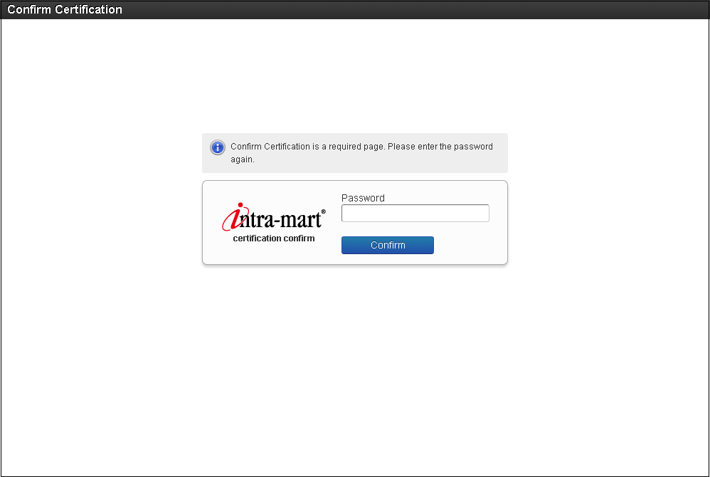intra-mart Accel Platform では、任意の画面で認証を行うために、認証確認機能が提供されています。認証確認機能とは、ログイン、または、認証確認を実行してから一定時間が経過した場合に、「認証確認」画面を表示してログインユーザに認証を求める機能です。この機能を使うことで、決済処理などのような業務的に重要な処理において、セキュリティを高めることができます。