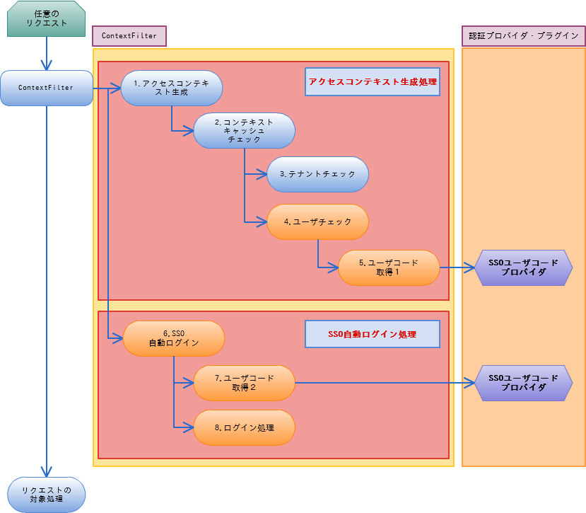 SSO自動ログイン処理は、アクセスコンテキストの生成処理時に実行されます。注意